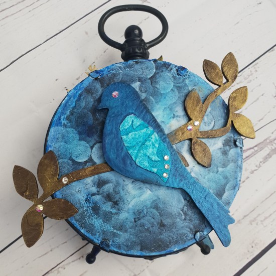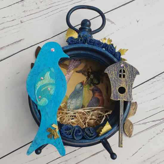 The birds, branches and bird house MDF shapes are from the kit as are the gems.