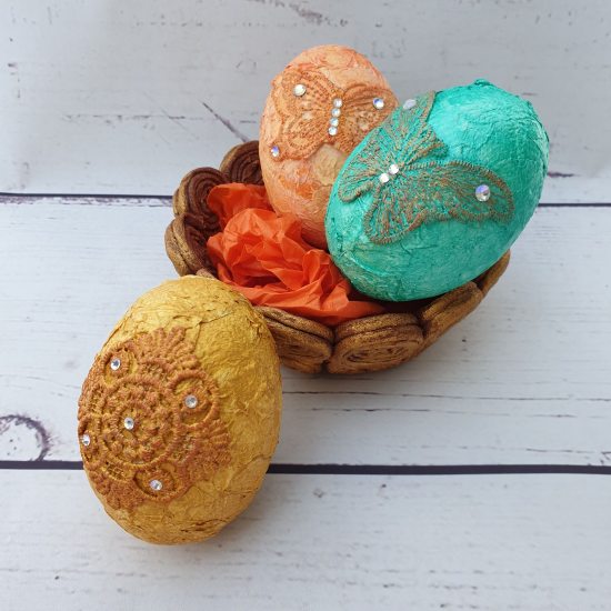 I finished the jewelled eggs by adding crystals to highlight details in the motifs with transparent Powertex