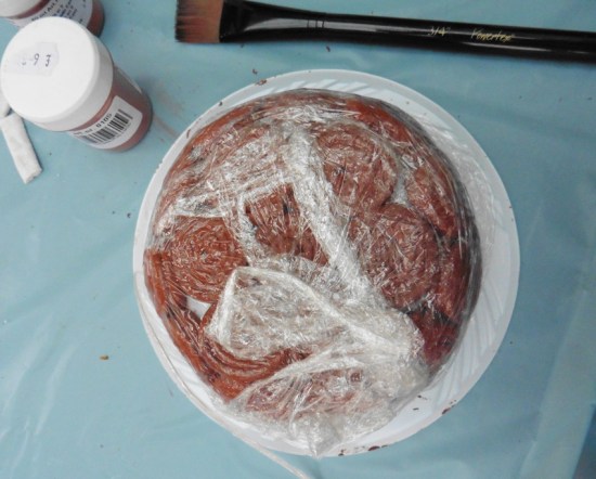 Because the T-Shirt yarn is thick even before its coiled, I left it for 24hrs to dry, covering it with clingfilm so it couldn’t be knocked.