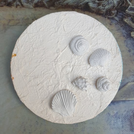 Once dried, I dry brushed the shells with ivory Powertex to give a base for pearl pigments.