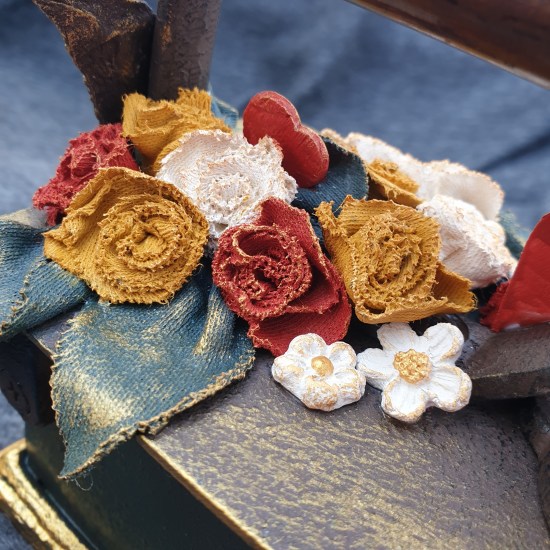 I love the warmer colours of Powertex such as bronze, terracotta and yellow ochre as they work well together as well as with brown and mahogany bisters, the gold colortricx and orange and brown pigments.