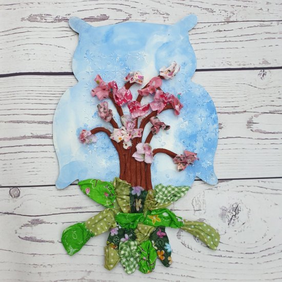 In our February class, we are using Transparent Powertex with a range of cotton fabrics to create a seasonal picture in the shape of a 32cm owl. The example pictured is of a spring combination but we cottons for the other seasons too.