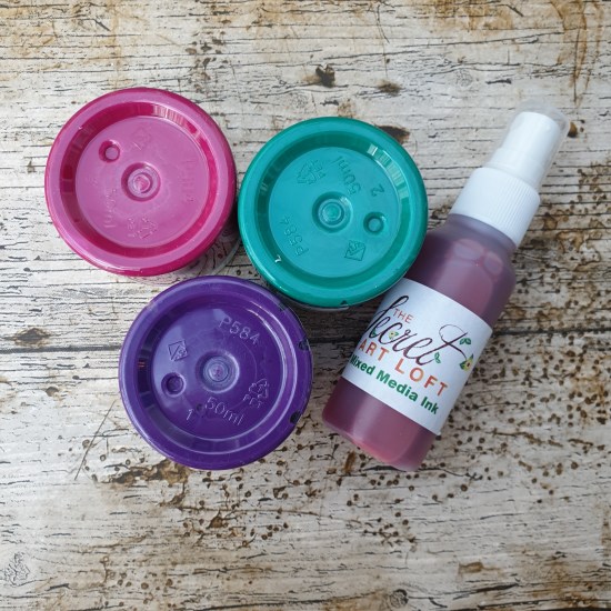 I then added analogue colours in acrylic paints of Raspberry Sorbet and Plum Pudding as well Mint Green as a compliment colour.