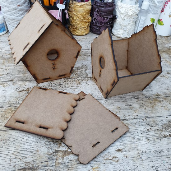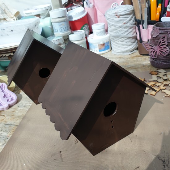 I’ve challenged myself to decorate two identical MDF birdhouse in two completely different ways.
