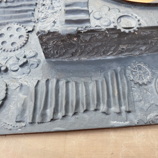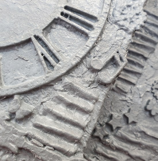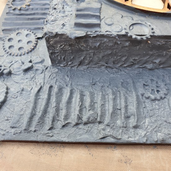 After adding all the embellishments, I covered them all with lead Powertex. As you can see some materials are covered by the first layer Powertex better than others.