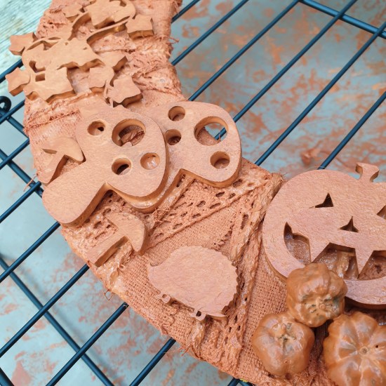 Although Powertex already comes into a range of amazing colours, you can increase your options by mixing them together. For this wreath I am using Red and Yellow Ochre to make orange as my base colour.