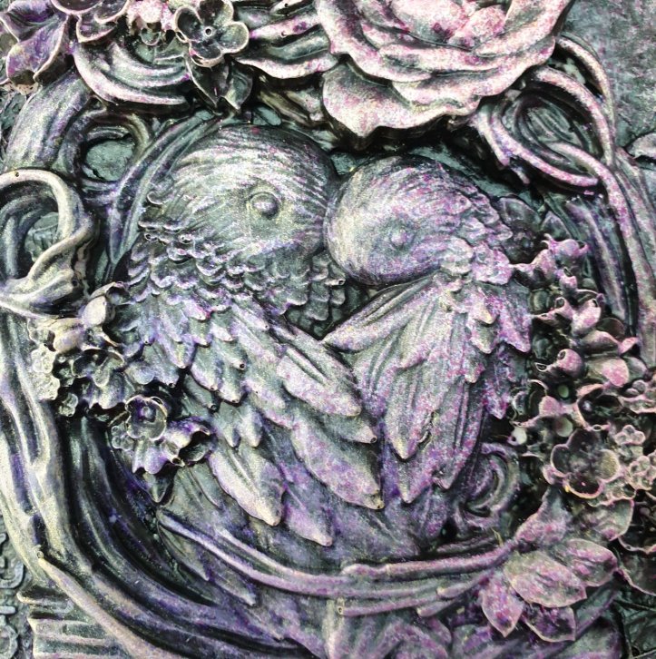 Once you have finished with the matt colours, you want to go over the project with a metallic or pearl sheen by dry brushing on either the Colortricx or Secret Art Loft Pigments. You need to leave this until after the matt colours so you don’t hide the shine.
