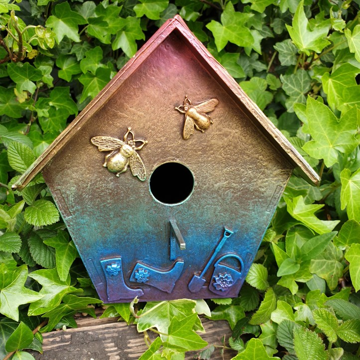 As they are colours I can’t show you examples of what they look like (but watch this space) but I do use The Secret Art Loft Pigments a lot, they build up well (this bird house has about 7 layers on it) and they blend together very well. The Secret Art Loft Pigments were developed by Powertex UK to work with Powertex and it does its job very well