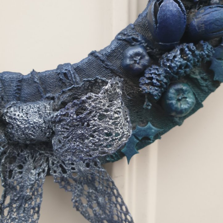 One of the ways that I use it is to make bows on my wreaths, you can use scrunched up cling film to help the bow loops to keep their shape whilst drying.
