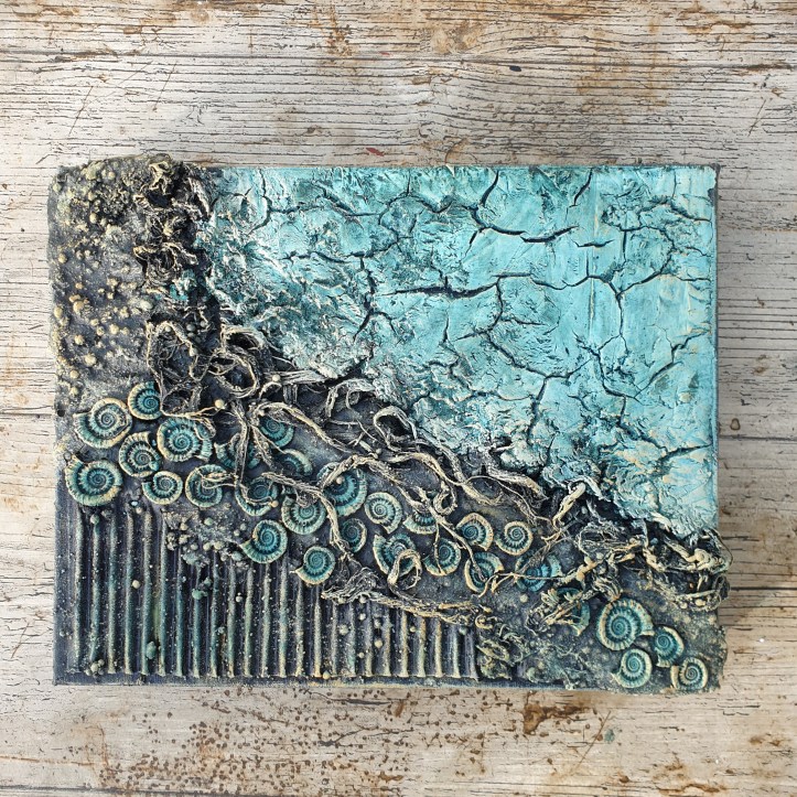 You will use Stone Art to create texture with sand and 3D stones. You will use Easy 3D Flex to create the ocean and PowerSmooth to create shell shaped embellishments. As well as using Powertex as a paint and Multi-Media techniques to come together to create a sea scape packed full of details.