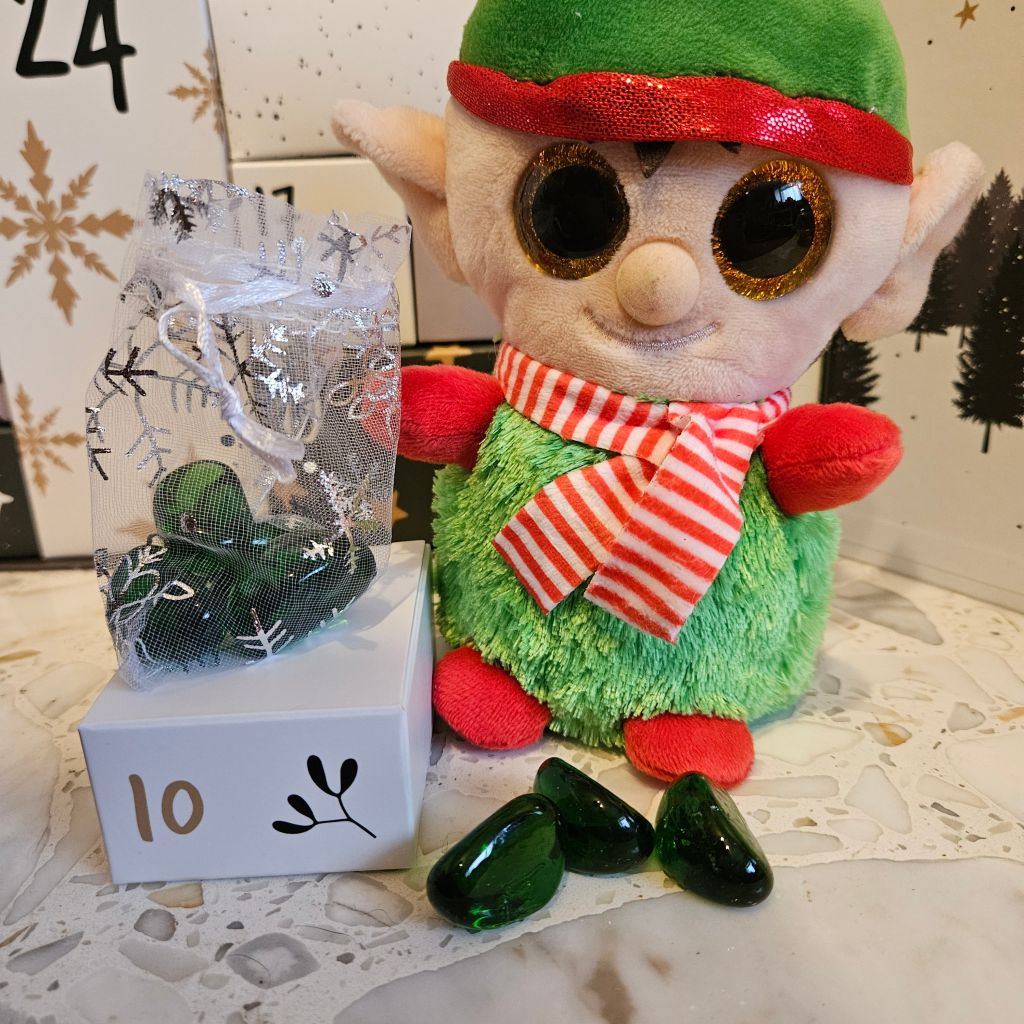 It’s packed with green glass Pebbles, it’s such a beautiful deep Christmas green. I have explained to Houston they are not edible.