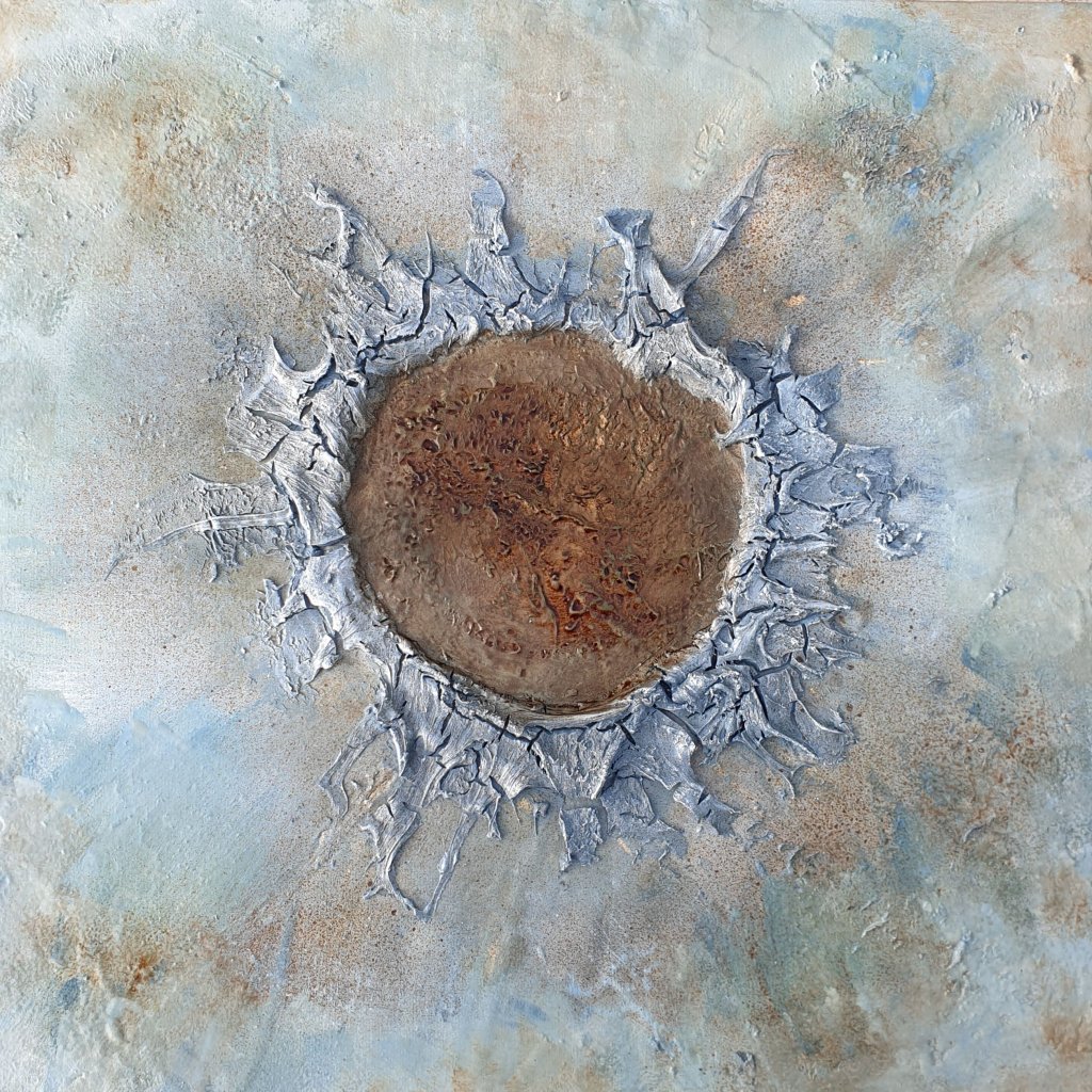 In our Star Burst Canvas, I mix a small amount of Brown Granules into Transparent Powertex to colour the middle of the Star as well as sprinkle a few into the wet Blue, Grey and Ivory Powertex to add depth before spritzing it with Liquid Bister