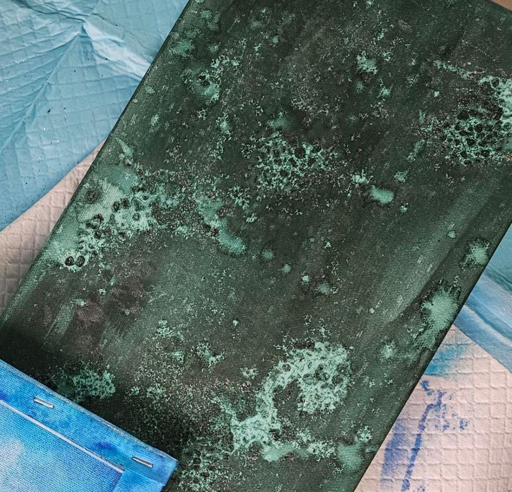 Houston is keen to show everyone how we used brown bister on ivory Powertex as a base before adding blue and white pigments