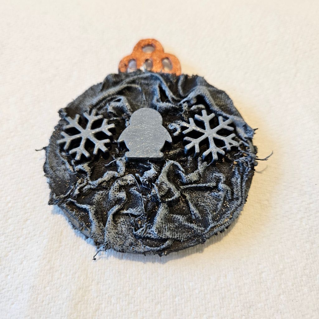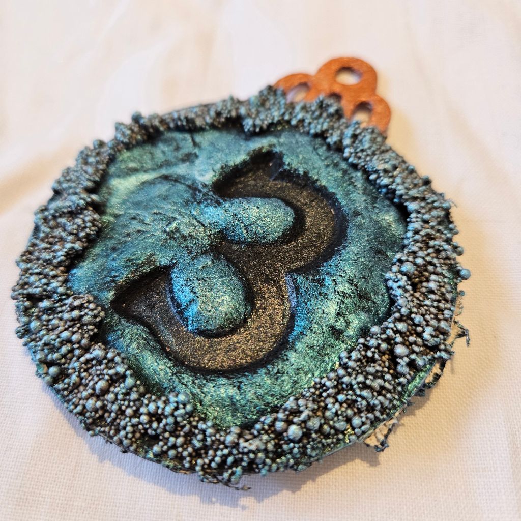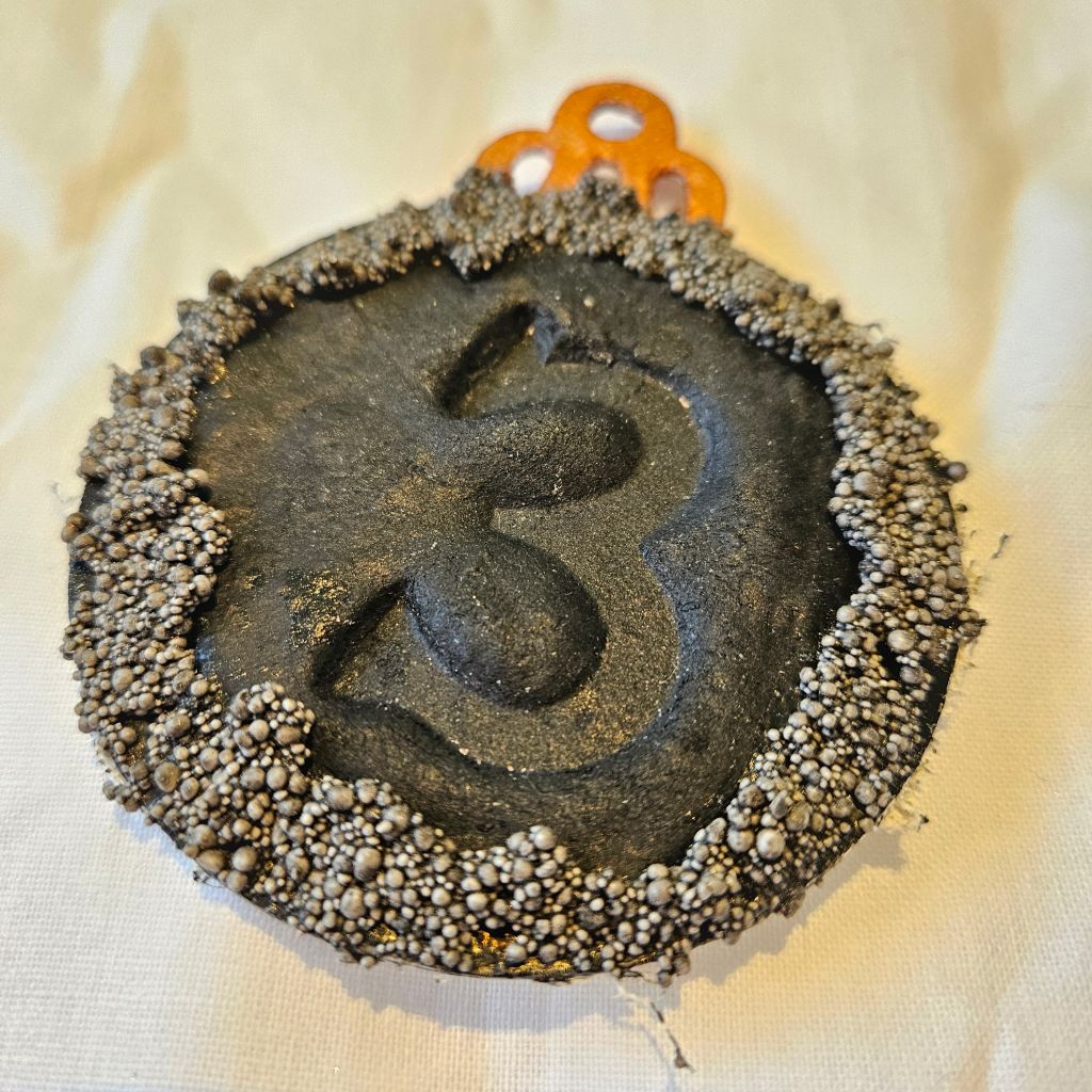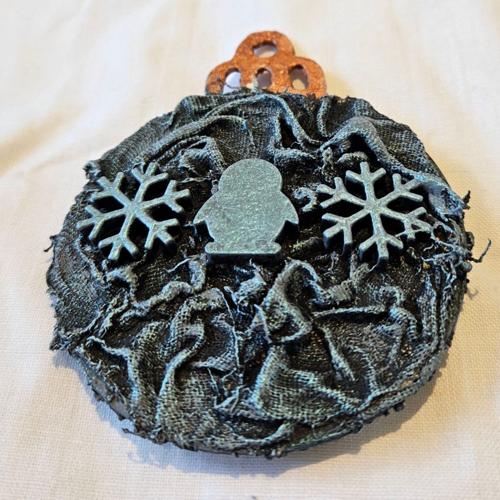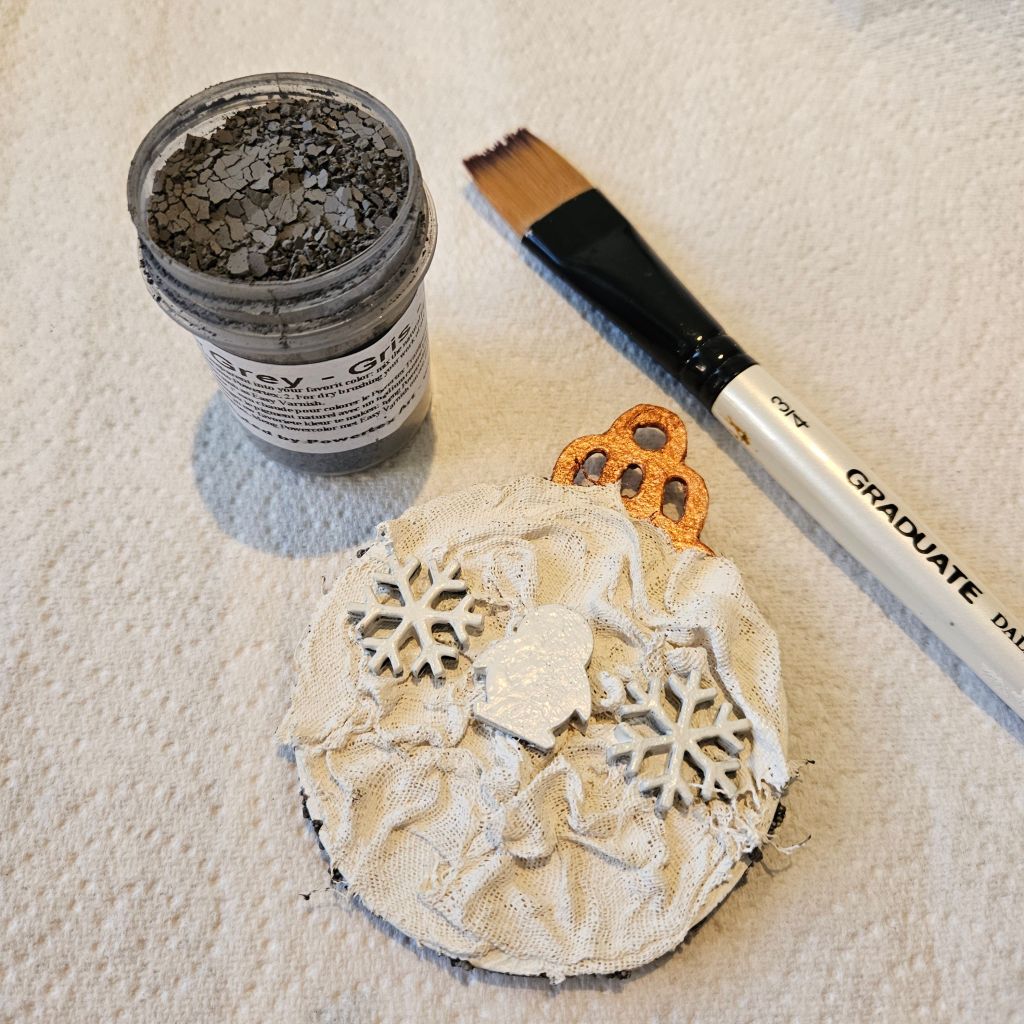 As they don’t show up on light backgrounds, I painted the Ivory side of the Bauble grey as the pigments reflect differently on grey than it does on black.