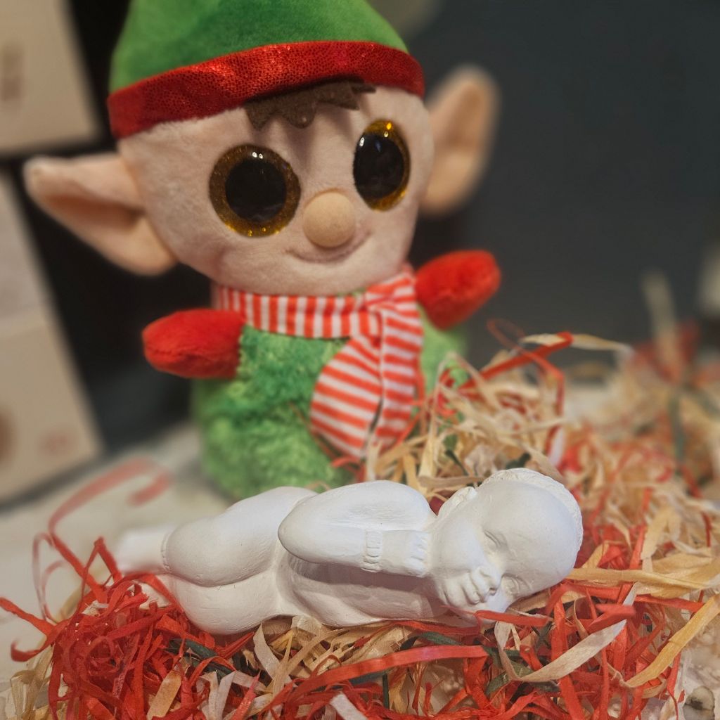 Its a baby, and the straw from a Manger, very festive and makes Houston want to start carolling.