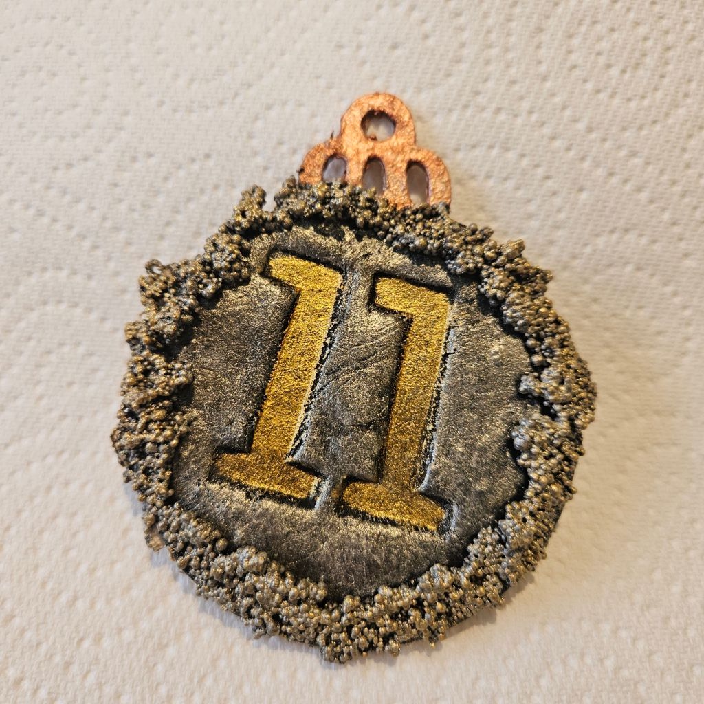 For the number side, I coloured the whole straight on the Black without knocking it back with the white. I decided to colour the numbers in Rich Gold and dry brushed a small amount on the balls round the edge.