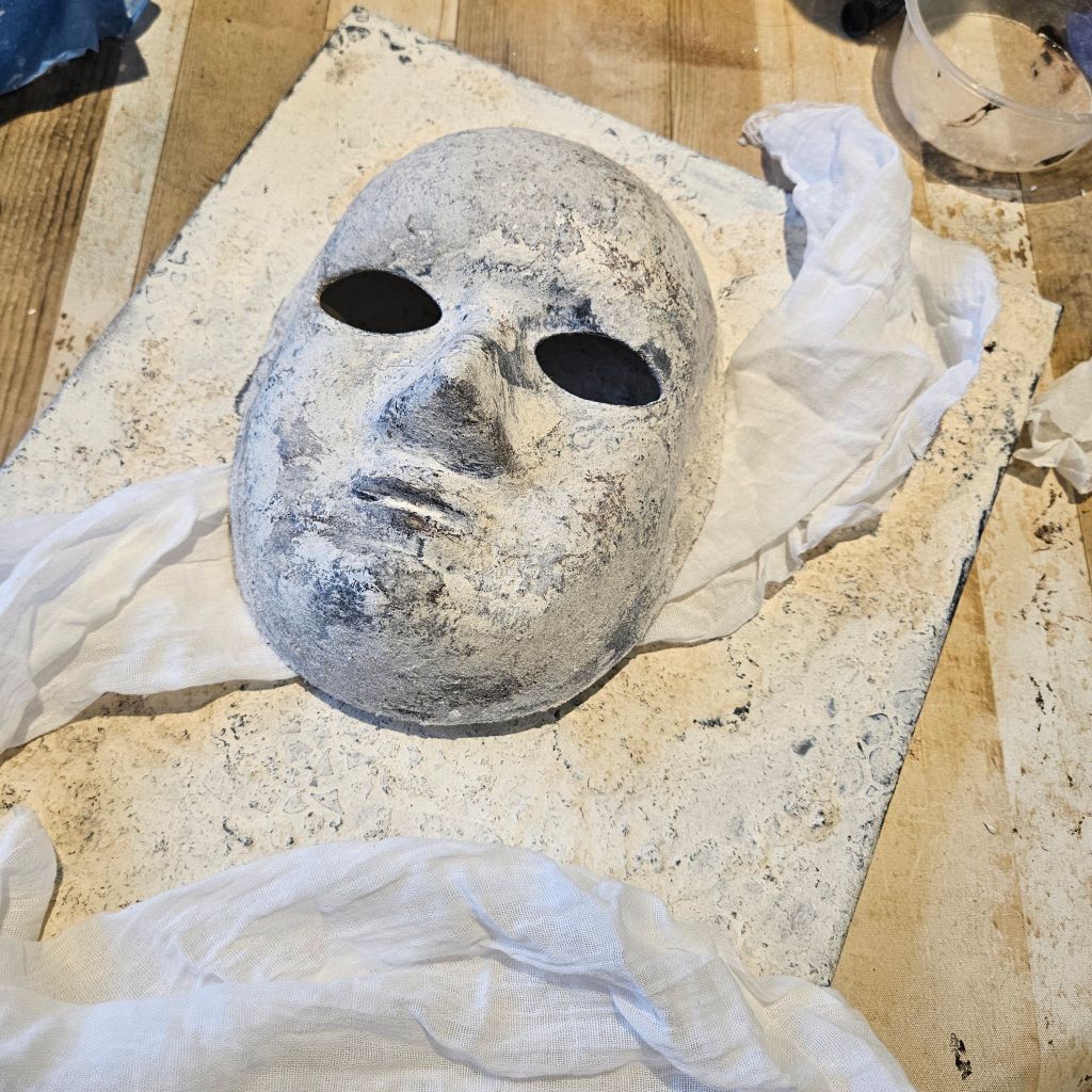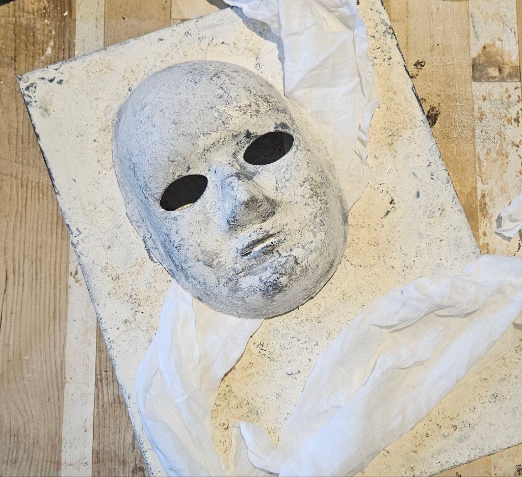 I have a canvas, a papier-mâché mask that Mr Portberry Crafts gave me for Christmas and some muslin cloth, a gift from my friend Jo at FloralStream crafts…. and my core Powertex products.